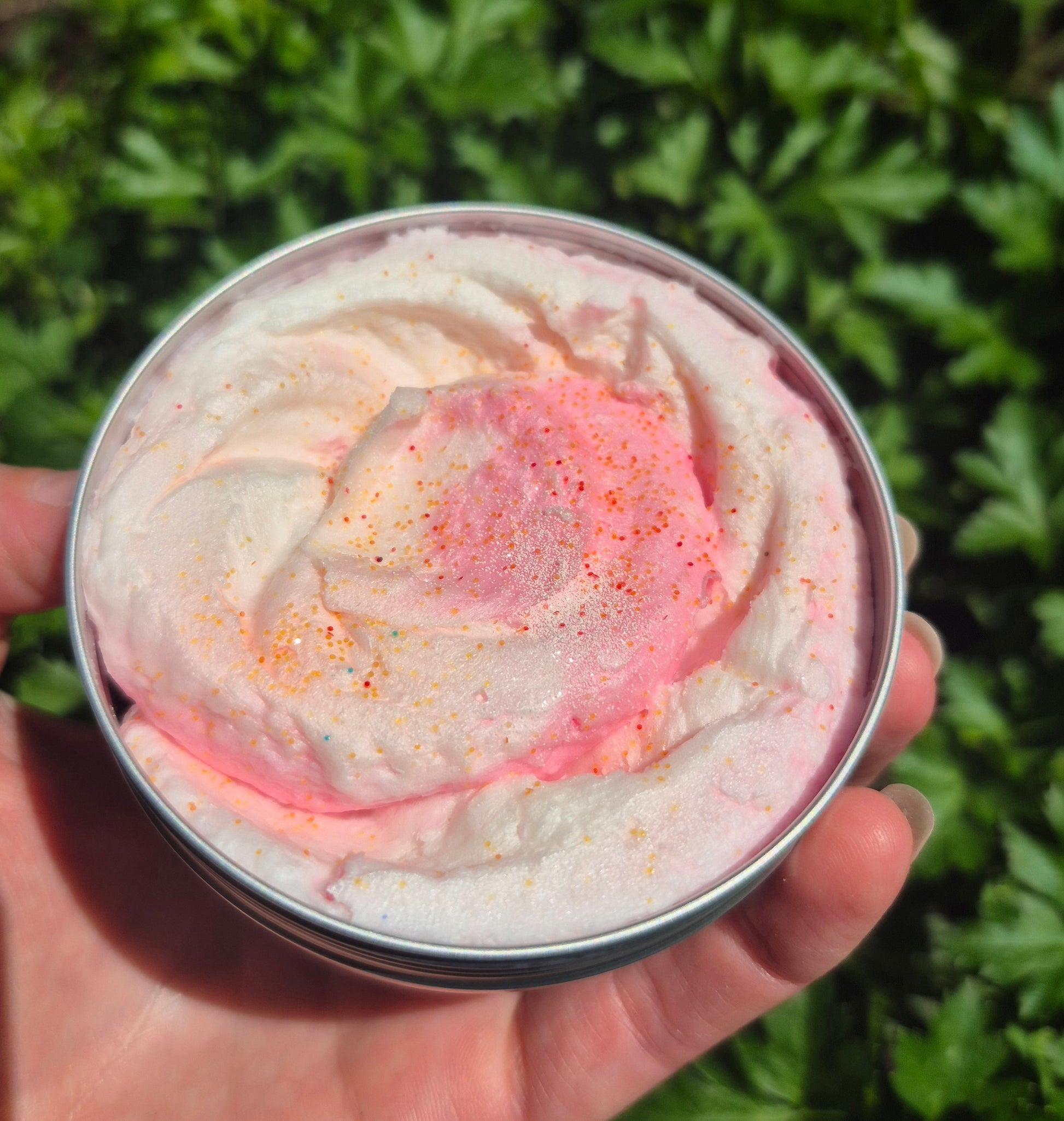 Ingredients: Canola Oil, Coconut Oil, Rice Bran Oil, Coconut Milk, Shea Butter, Castor Oil, Essential Oils, Avocado Oil, Mica, Biodegradeable Glitter.